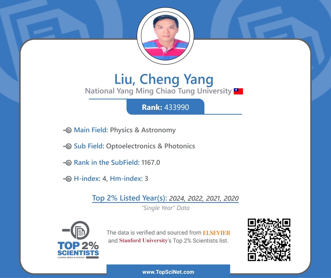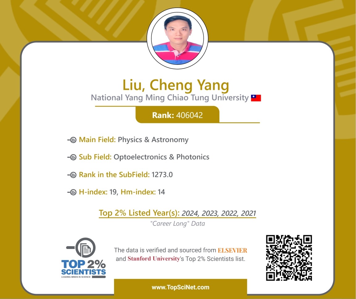 賀本系劉承揚教授連續4年入選「全球前2%頂尖科學家,終身科學影響力排行榜」Stanford University’s Top 2% Scientists (Career Impact)! 10 月 7, 2025 | 亮點, 活動與要聞, 活動與訊息分享 本系劉承揚教授入選「全球前2%頂尖科學家,終身科學影響力排行榜(1960-2024)」Stanford University’s Top 2% Scientists (Career Impact) (1960-2024) List Order by Date Name 附件下載 劉承揚教授連續4年入選「全球前2%頂尖科學家,終身科學影響力排行榜」-1 劉承揚教授連續4年入選「全球前2%頂尖科學家,終身科學影響力排行榜」-2